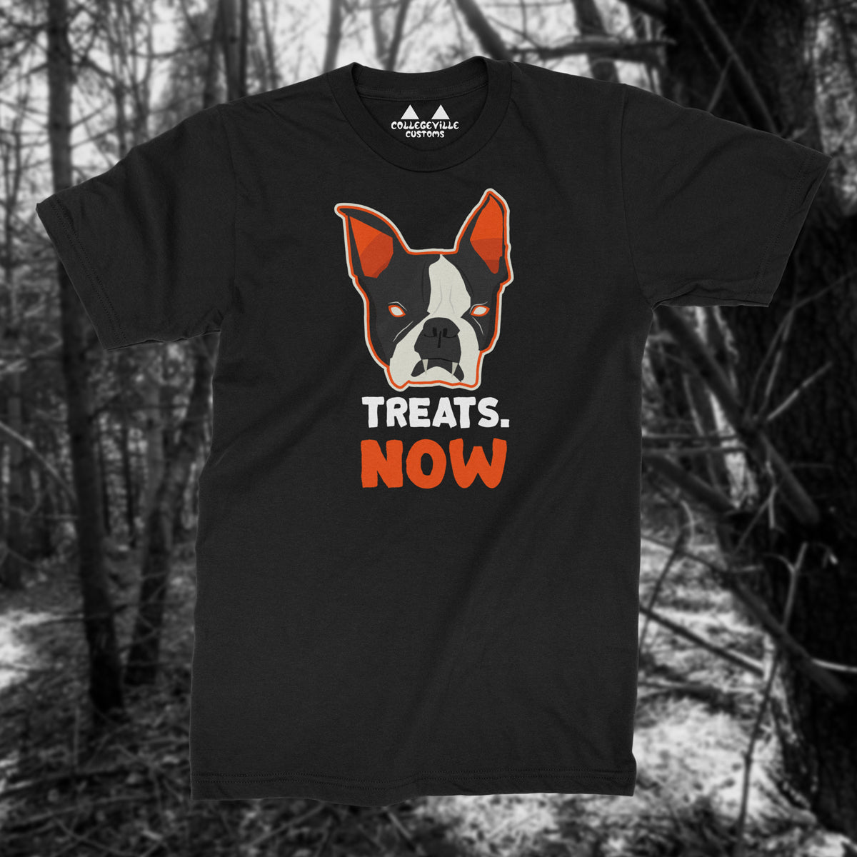 TREATS NOW Funny Boston Terrier Vampire Dog Shirt